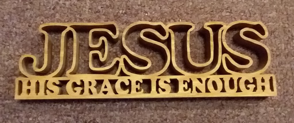 My Dad faced some thorns, some trials in his last years, as I suppose most people do in their final years. And yet my Dad’s testimony through this simple shelf sitter is that the grace of Jesus was sufficient. His grace was enough.